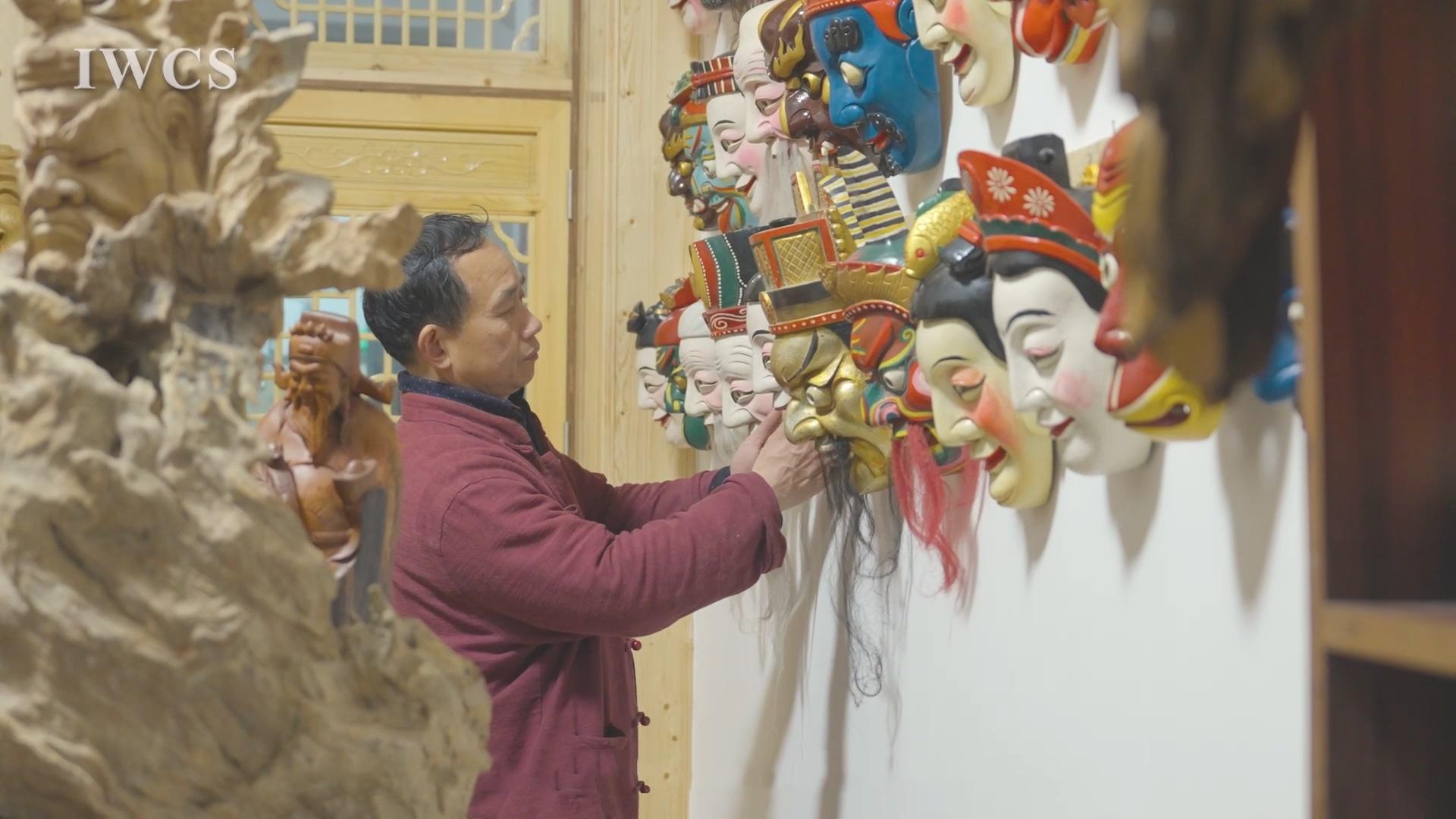 As one of the many Nanfeng artists engaged in Nuo mask carving, Luo Chunming has been practicing this craft for over 30 years. Currently, there are more than 100 types of Nanfeng Nuo masks, totaling over 2,000 pieces, primarily made from poplar wood and camphor wood, with camphor wood being the more commonly used material. Nanfeng Nuo masks feature a wide variety of characters with diverse and unique designs. In addition to iconic figures such as Zhong Kui, the God of Wealth, and Nuo Grandpa and Nuo Grandma, there are many characters from folk stories, including notable figures from “The Journey to the West" and "Romance of the Three Kingdoms."